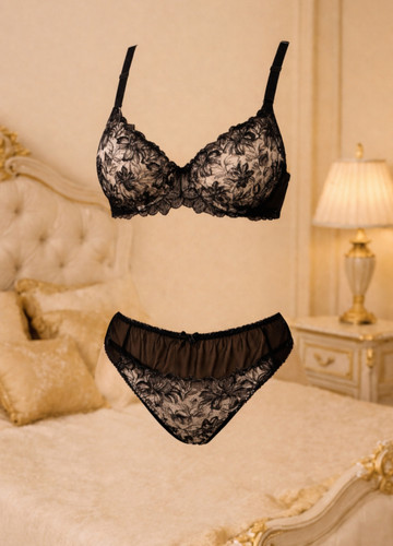 ست شورت و سوتین زنانه هانکس تور فنردار مشکی کاپ C شورت بکلس